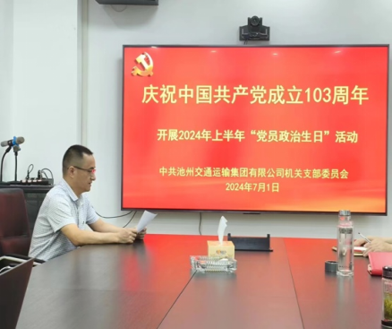 為隆重慶祝中國共產(chǎn)黨成立103周年,促進(jìn)當(dāng)前黨紀(jì)學(xué)習(xí)教育走深走實(shí),7月1日上午,交運(yùn)集團(tuán)機(jī)關(guān)黨支部開展了黨紀(jì)學(xué)習(xí)教育集中學(xué)習(xí)暨黨員集體過“政治生日”慶;顒(dòng)。