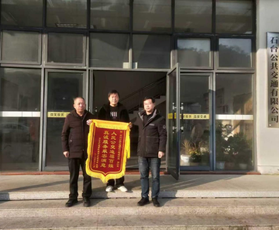 2025年12月11日上午,石臺公共交通有限公司磯灘班線駕駛員收到了一份特殊的禮物——由磯灘村黨支部李書記帶領(lǐng)村支兩委專程送來的一面錦旗。錦旗雖輕,情誼卻重,它不僅代表了村民對公交人真摯的感謝,更凝聚著對其長期以來熱情服務(wù)、敬業(yè)奉獻的高度認(rèn)可。